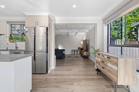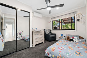 Step inside and discover a modern open-plan kitchen, dining and family zone filled with natural light and comfort. The kitchen boasts sleek finishes, including a gas cooktop, under-bench oven, canopy rangehood, and dishwasher-ideal for everyday living and entertaining. A split system for heating and cooling ensures year-round comfort.